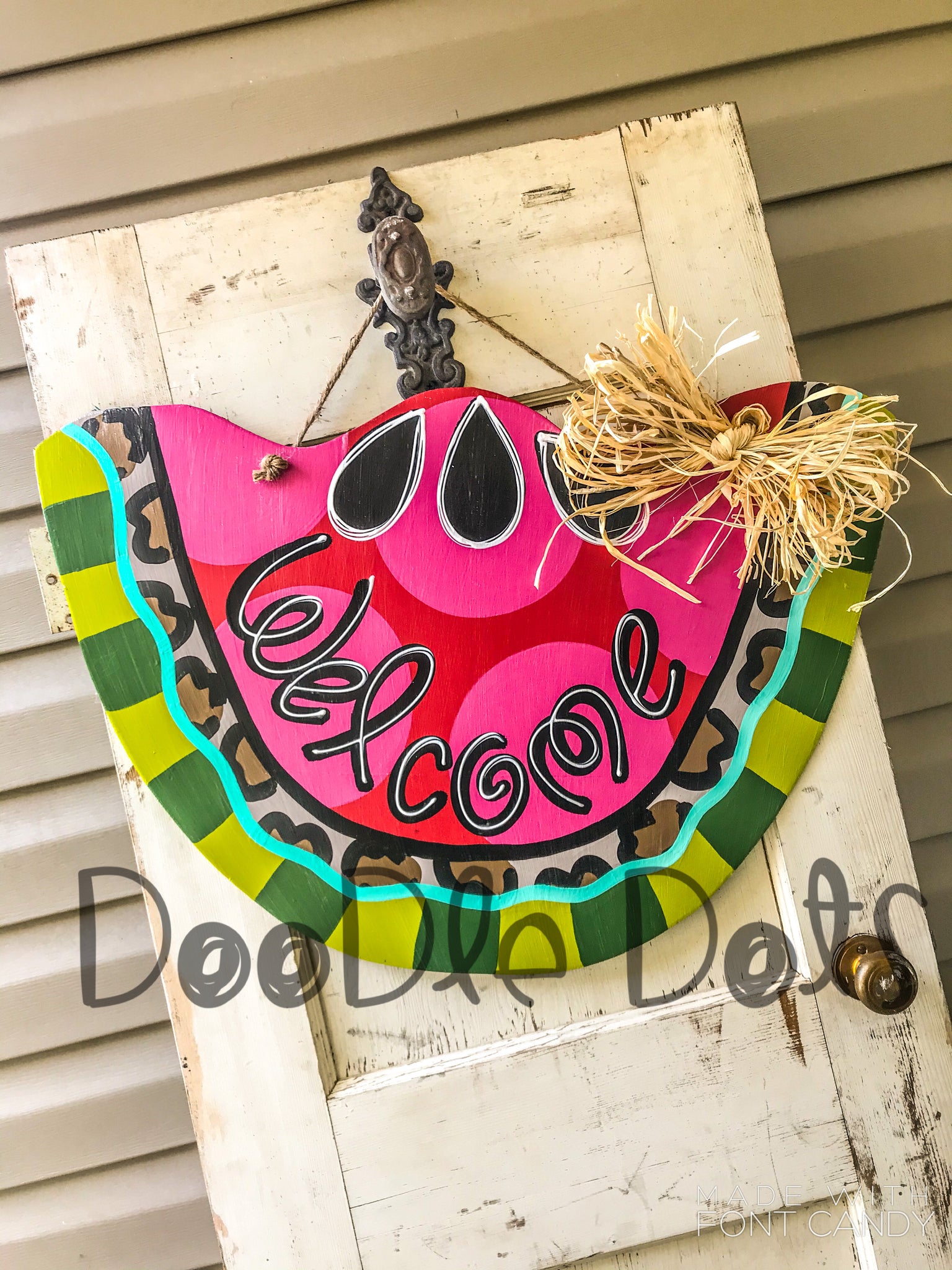 Painted on 1/4 in wood. Measures 28 by 19 in. Sealed with waterproof sealer. Comes with raffia bow. These watermelons come with a little leopard print! If you want it painted a certain way just message me!