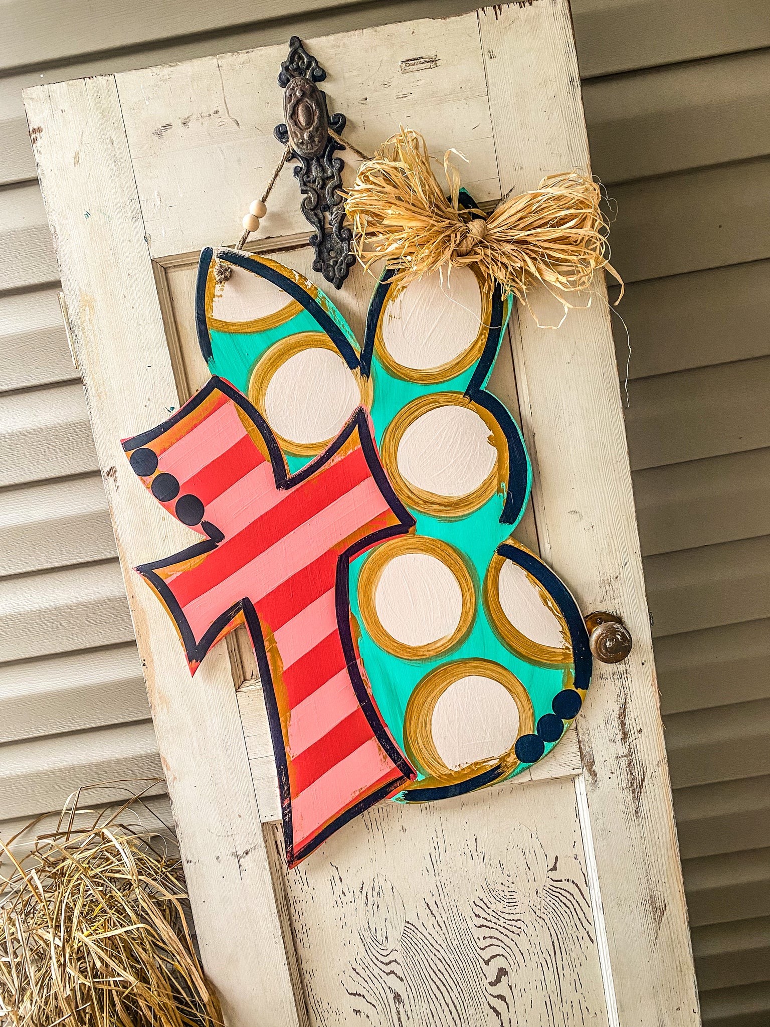 Teal bunny/coral cross