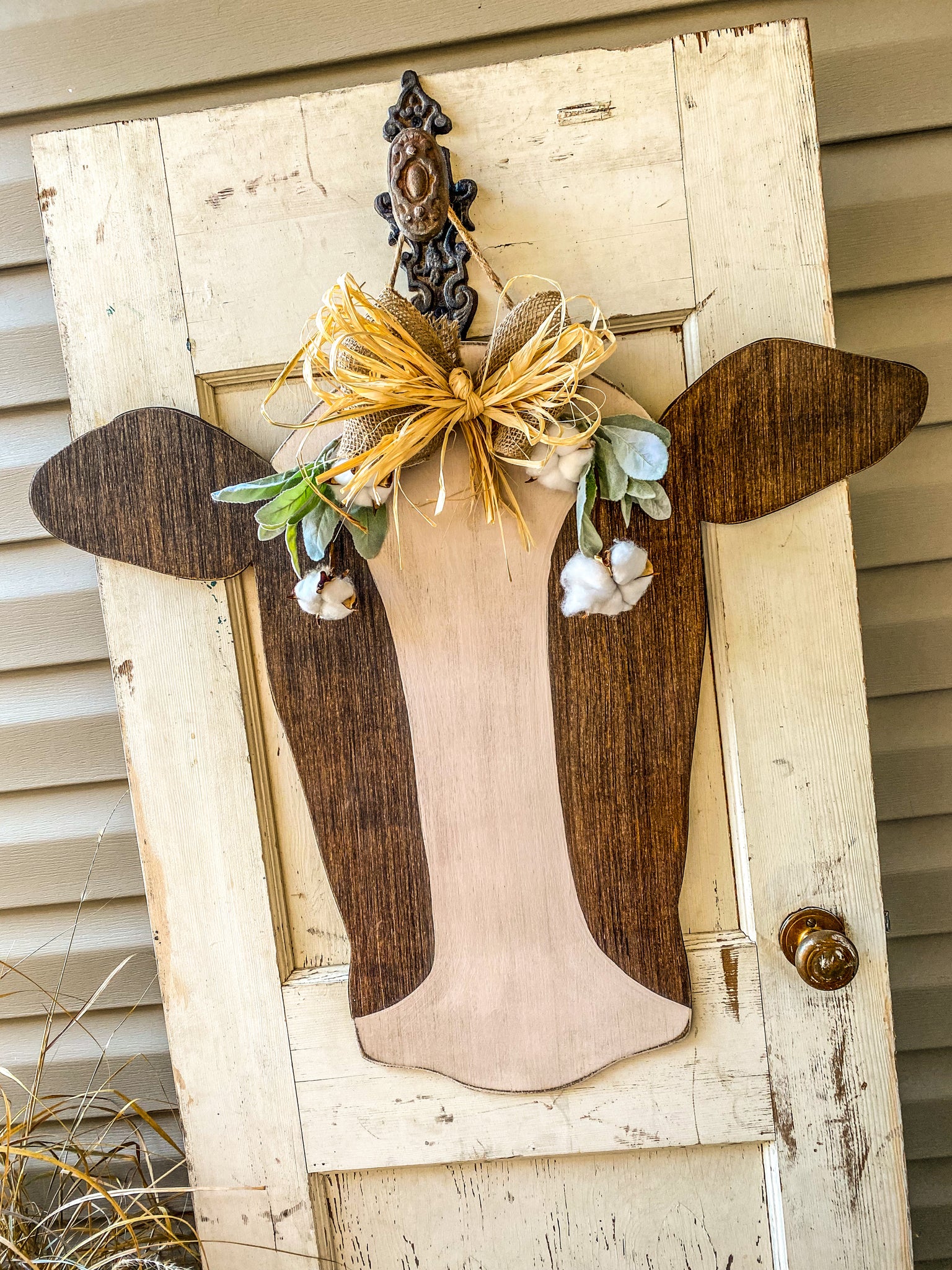 Cow Head Door Hanger (Stained & White)