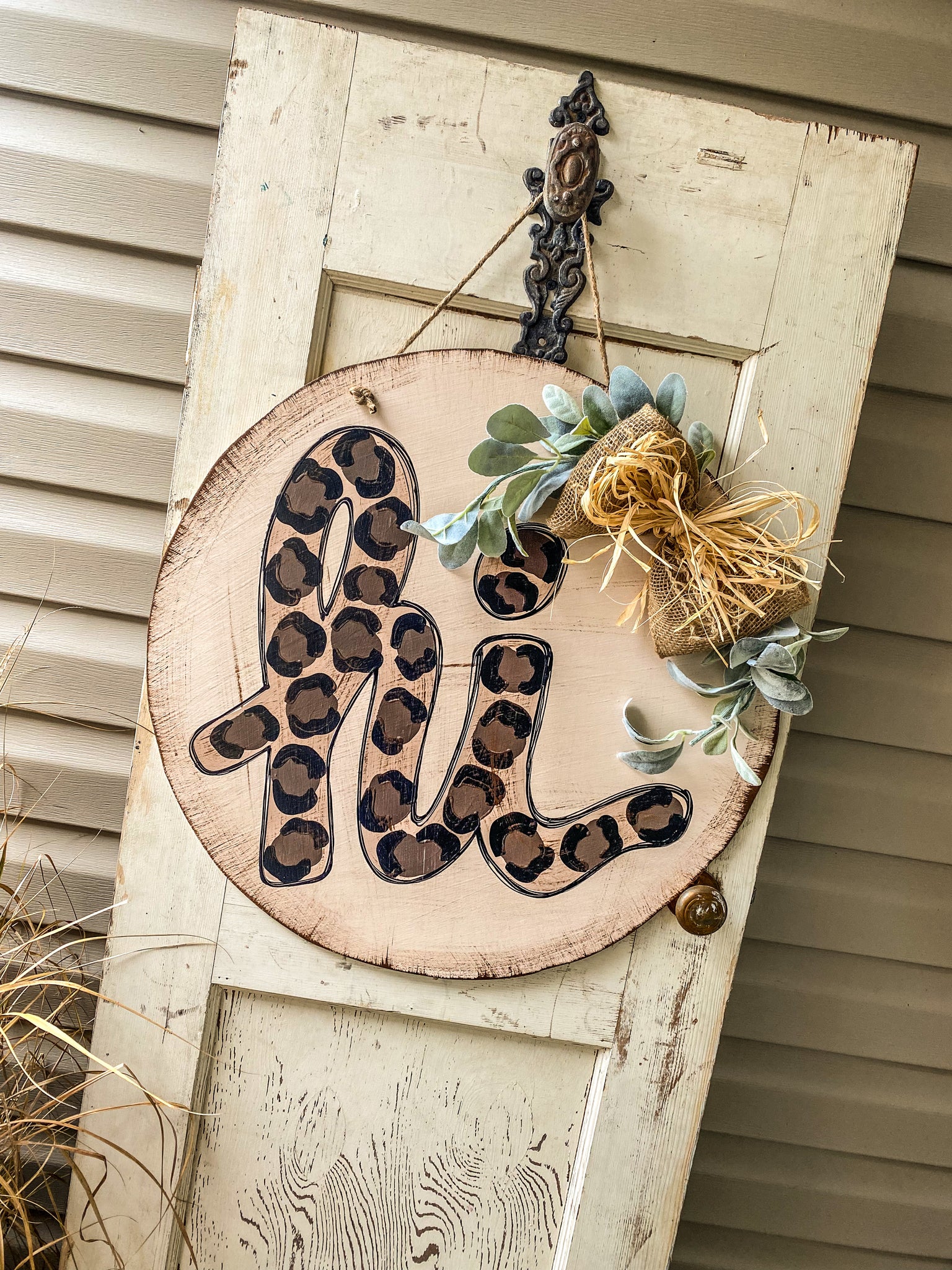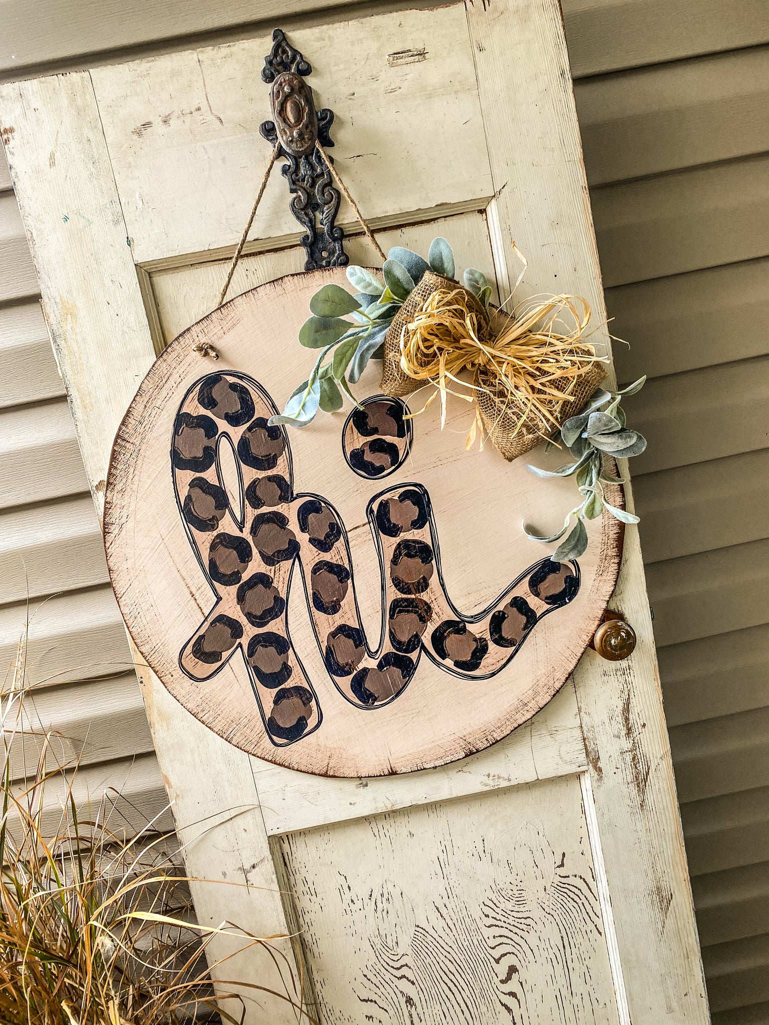 Made of 1/4 in wood. Measures 24 in wide. Comes sealed with weatherproof sealer and greenery raffia bow.